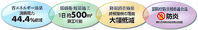 従来の折板屋根に対する直射日光対応策は、屋根材を二重構造にして内部にグラスウール等の断熱材を施す「屋根材二重構造」、屋根材に特殊塗料を塗布して太陽光線を熱反射させる「遮熱塗装」、屋根にスプリンクラーを施して気化熱により温度上昇を低減させる「直接散水」や屋根緑化などの対応策が施されていましたが、いずれも初期投資やランニングコスト面から得策とは言えず、慢性化する夏場の電力不足に対応する節電・省エネ対策が急務となっています。
